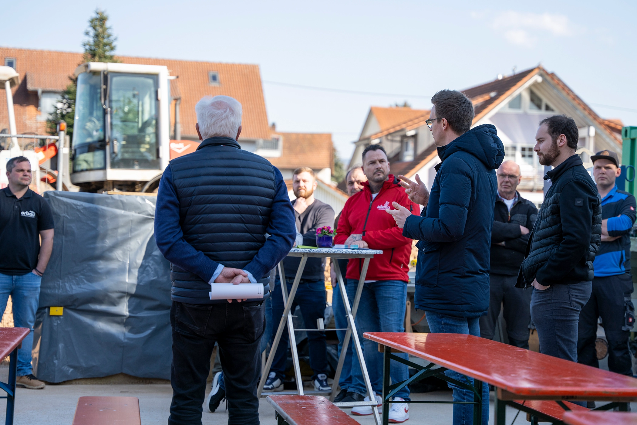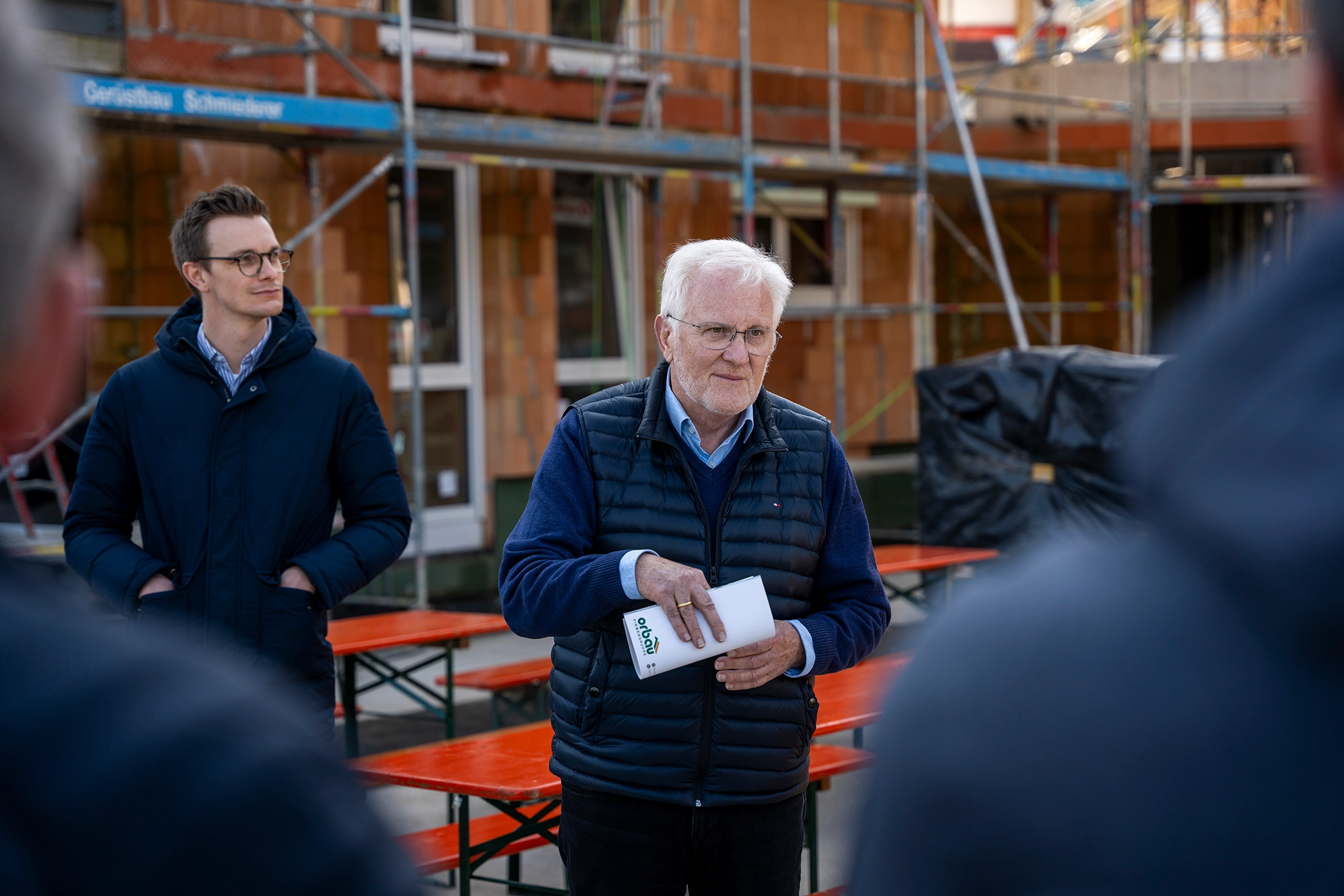 Philipp Storr verantwortet bei orbau den Baubetrieb. Nach seinen Angabenbeschäftigt orbau 70 Handwerker, weshalb man bei diesem Projekt rund 60 Prozentselbst bewerkstellige. „Die Arbeit unserer Handwerker kann sich sehen lassen“, sagte er mit Blick auf die Rohbauten. Den Richtspruch hatte eingangs Lukas Gerlach gesprochen.